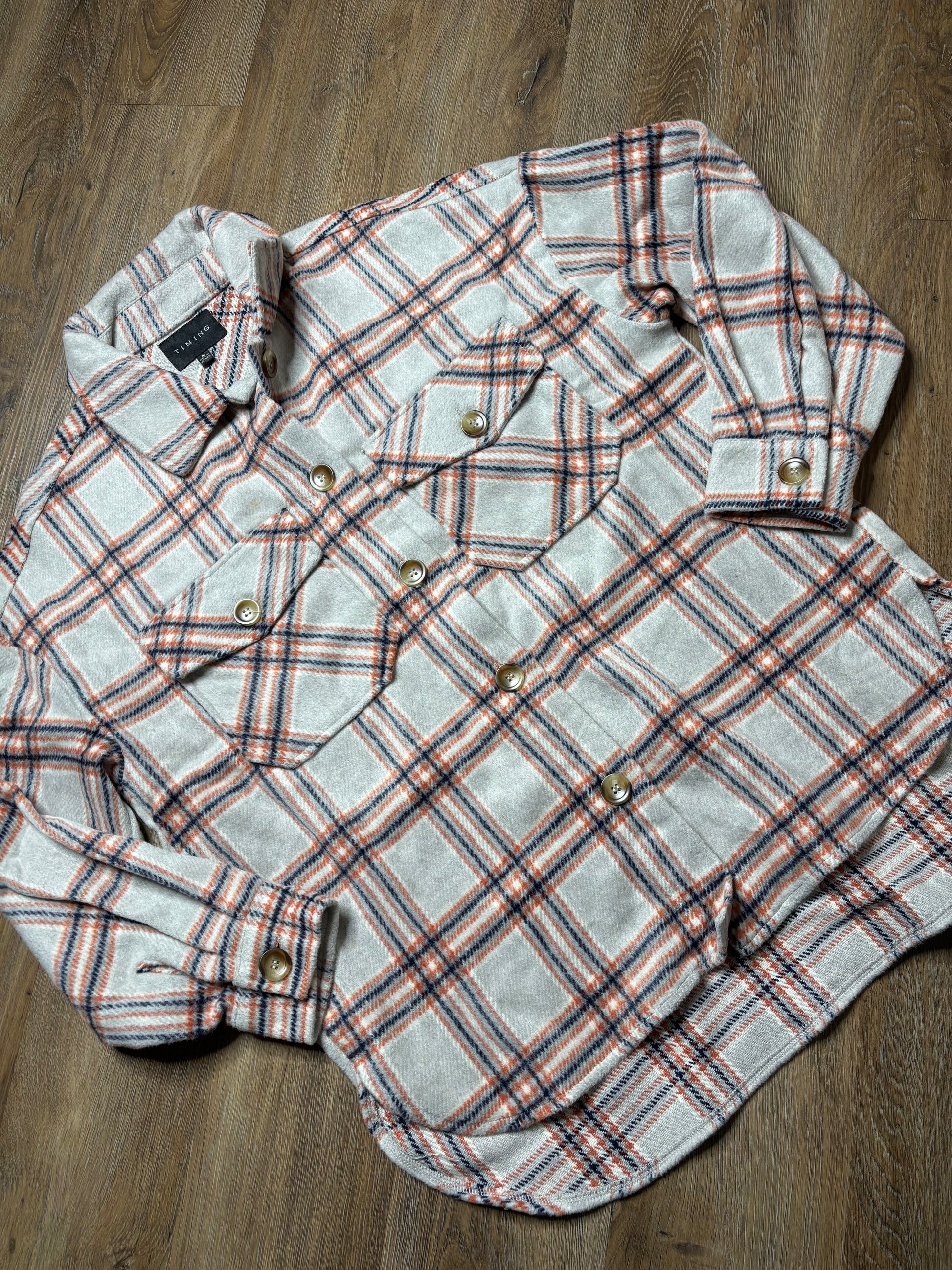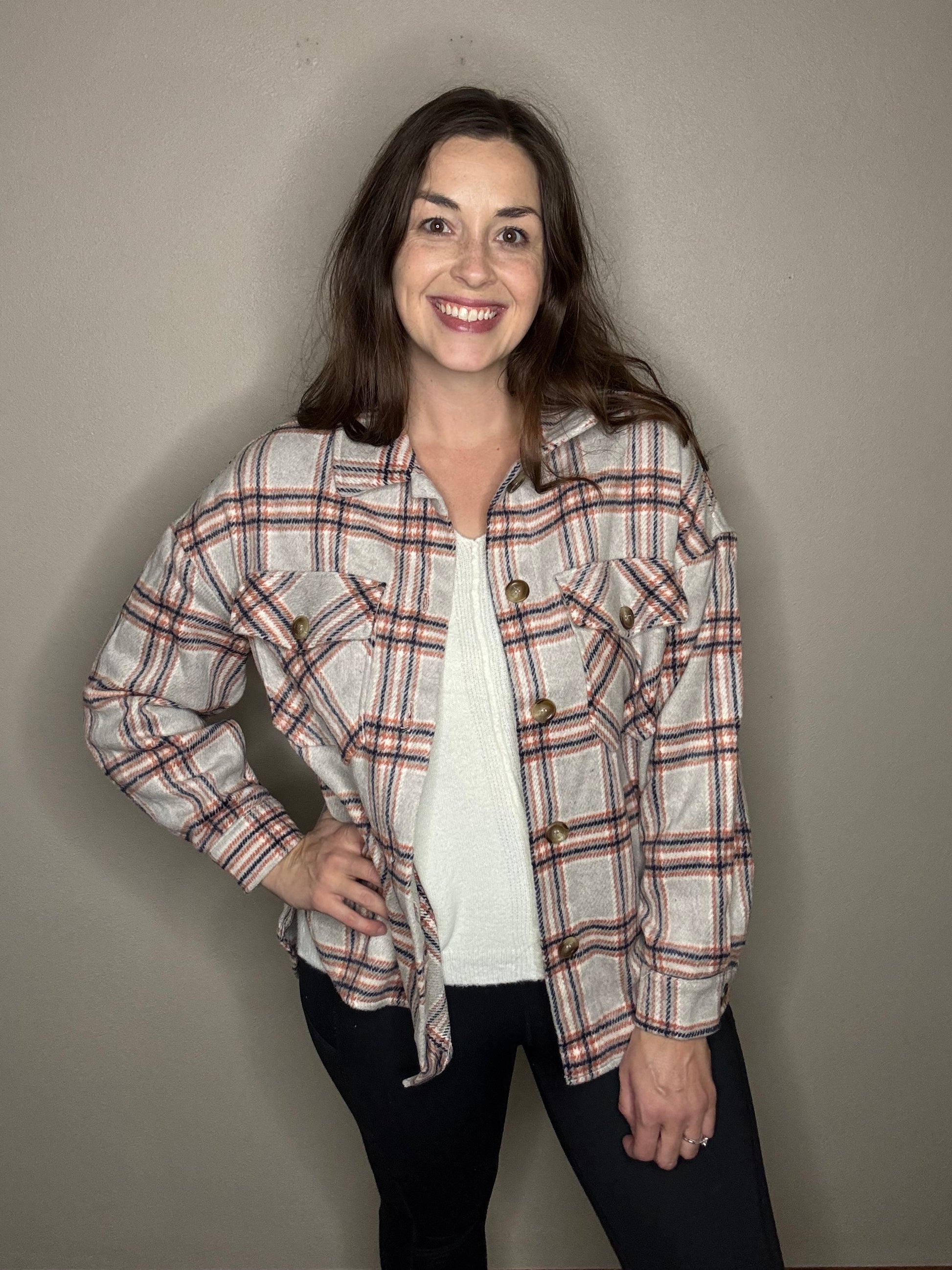 This cozy plaid jacket brings the perfect mix of style and comfort to your fall and winter wardrobe. Soft, fuzzy fabric and a breathable, midweight feel keep you warm without overheating. Featuring a classic button-down front, collared neckline, and handy side pockets, it’s perfect for layering over your favorite t-shirt. Whether you’re out shopping, cheering at a football game, or hanging with friends, this flannel jacket adds a playful touch to every casual occasion. Stay comfy, stay cute, and embrace the season’s cool vibes!