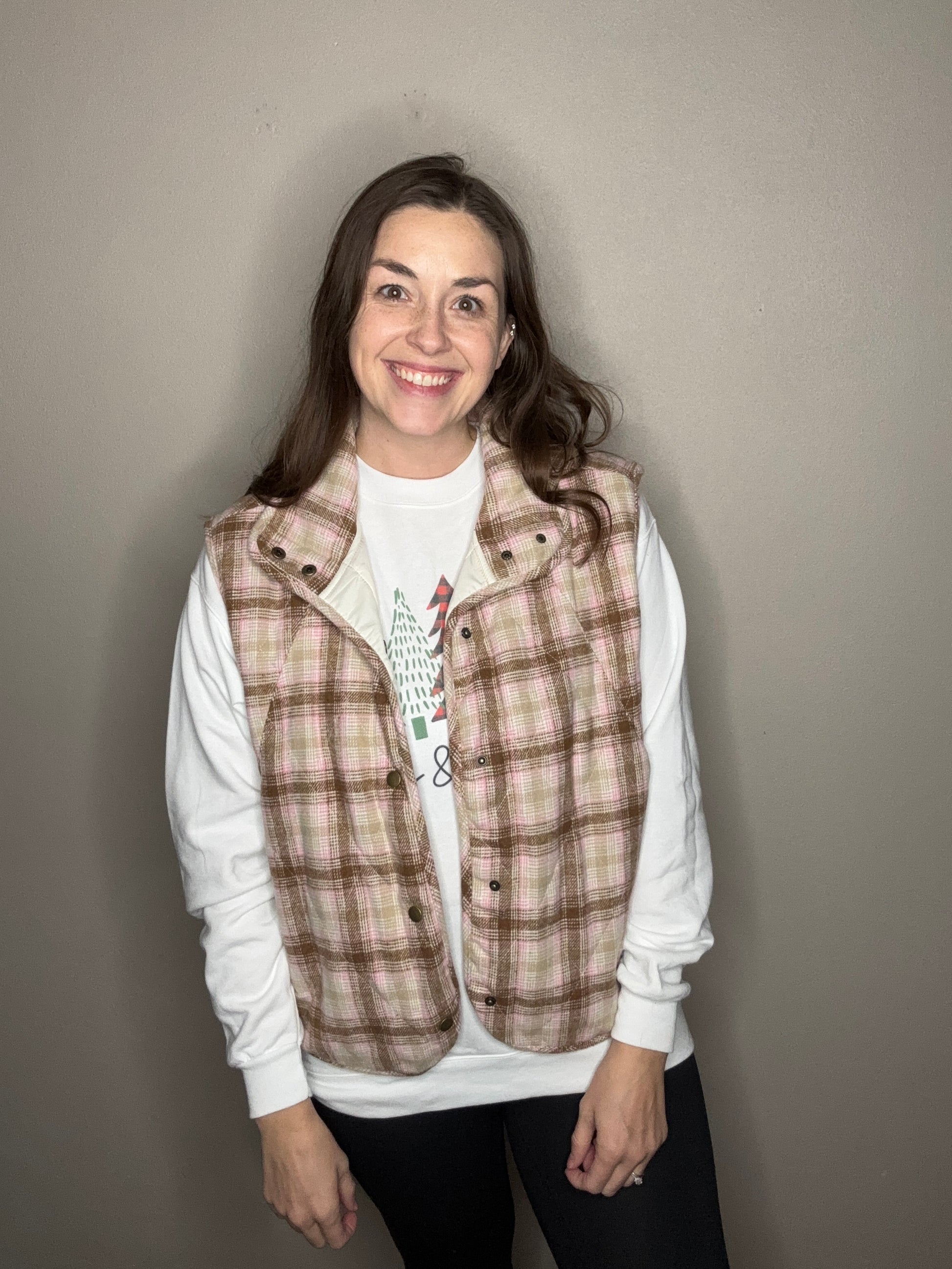 Layer up with serious style in this plaid quilted puffer vest! The high neckline and snap button closure make it easy to slip on and adjust to your comfort level, while the sleek woven exterior keeps things looking sharp. Practical side pockets are perfect for stashing essentials, and the fully lined interior adds cozy warmth without the bulk. Whether you're heading to the office or grabbing coffee with friends, this versatile vest is your new go-to piece for effortless, put-together vibes.