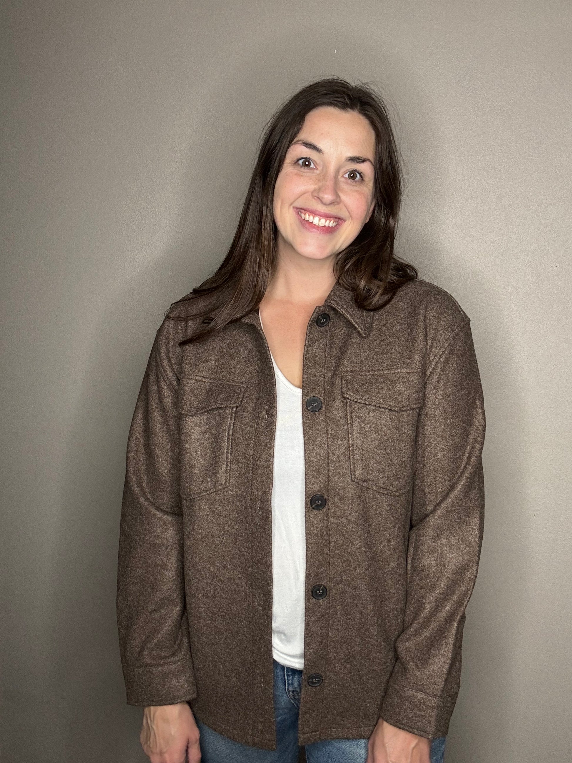 Throw on this cozy mocha shacket and get ready to turn heads! The perfect shirt-jacket hybrid features practical side pockets to stash your essentials, a toasty warm fabric that'll keep you comfortable all season long, and a classic button-up front for easy layering. Whether you're running errands or meeting friends, this versatile piece transitions seamlessly from casual to put-together. A wardrobe essential that's as functional as it is fabulous.